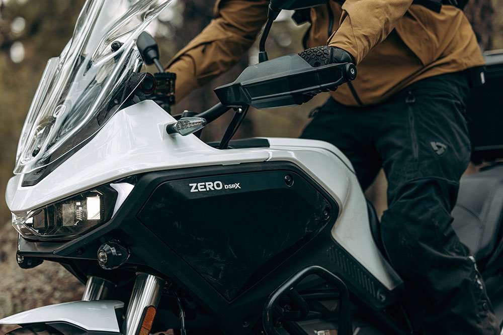 La ergonomía de la DSR/X también es completamente diferente. Gracias a la altura del asiento de 32.6 pulgadas, da la sensación de que estás sentado dentro de la moto, en lugar de encima de ella. A pesar de la baja altura del asiento, no se hicieron concesiones en lo que respecta a la distancia al suelo. La DSR/X se encuentra a unas respetables 9.7 pulgadas de la tierra. Si el asiento original no funciona para ti, los asientos opcionales tanto más altos como más bajos del catálogo de accesorios de Zero darán a los pasajeros de todos los tamaños motivos para alegrarse.