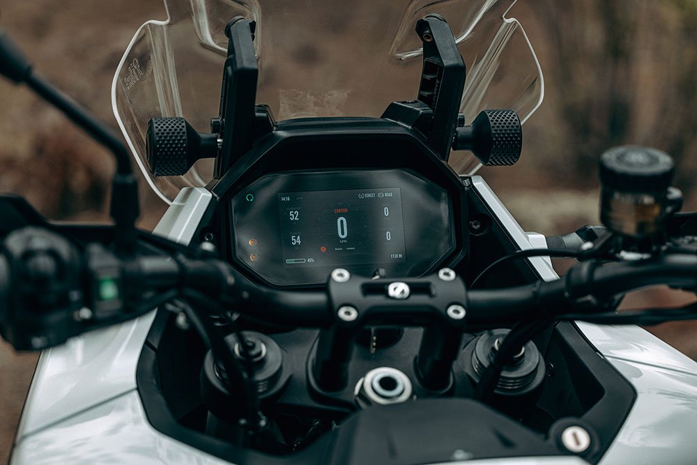 La DSR/X 2023 presenta el nuevo sistema operativo Cipher III+ de Zero. La nítida pantalla LCD permite a los pasajeros acceder a una gran cantidad de modos de potencia. Uno de mis favoritos es el nuevo Modo Cañón, que ofrece la misma aceleración que el Modo Deportivo, pero con un frenado regenerativo mucho más fuerte al soltar el acelerador. Si no te gusta lo que ha creado Zero, puedes personalizar cada uno de estos modos a tu gusto a través de la aplicación para teléfonos inteligentes de Zero y luego cargarlos en la moto.