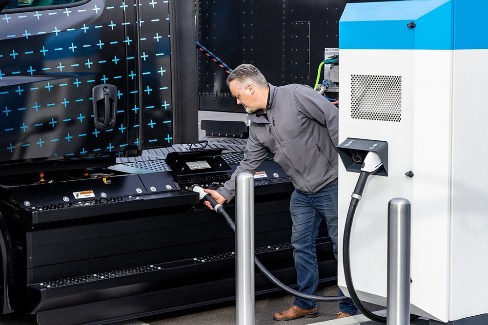 La falta de una infraestructura de carga eléctrica nacional disponible públicamente para vehículos comerciales, especialmente los que se utilizan para operaciones de carga de larga distancia, sigue siendo una de las mayores barreras para el despliegue generalizado de camiones eléctricos. Por lo tanto, DTNA sentó las bases junto con NextEra Energy Resources, LLC y BlackRock Renewable Power a principios de año para una futura empresa conjunta para diseñar, desarrollar, instalar y operar una red de carga de alto rendimiento a nivel nacional para vehículos medianos y pesados. -vehículos eléctricos de batería y de pila de combustible de hidrógeno. Las partes planean construir una red de sitios de carga en rutas de carga críticas a lo largo de la costa este y oeste y en Texas para 2026, aprovechando la infraestructura y las comodidades existentes y agregando sitios nuevos complementarios para satisfacer la demanda anticipada de los clientes. La primera fase está programada para comenzar en 2023.