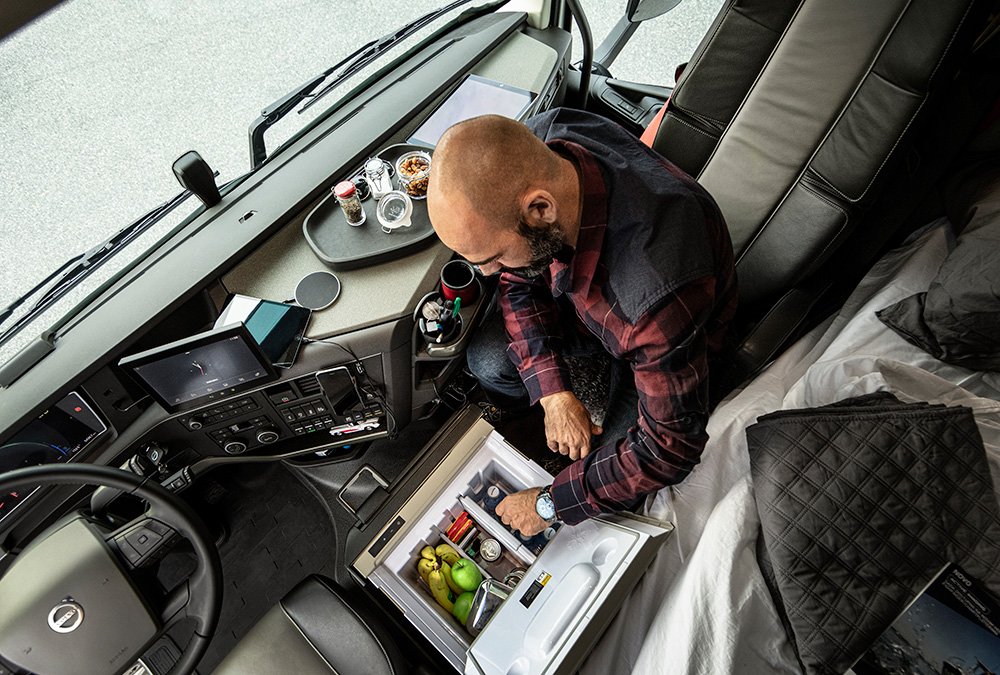 El tablero presenta un diseño ligeramente curvado que permite al conductor llegar con comodidad a todos los controles. En el centro hay un nuevo panel de instrumentos combinado con una pantalla en blanco y negro de gran tamaño con información para el conductor. Existen varios paquetes de cabinas diferentes que contienen equipamiento extra, como una litera abatible, los sistemas de seguridad activa de Volvo y funciones de gama alta para el sistema de sonido estéreo.