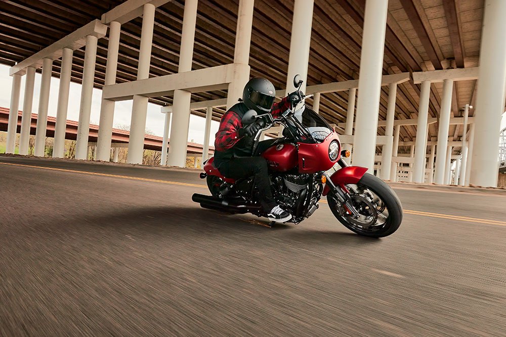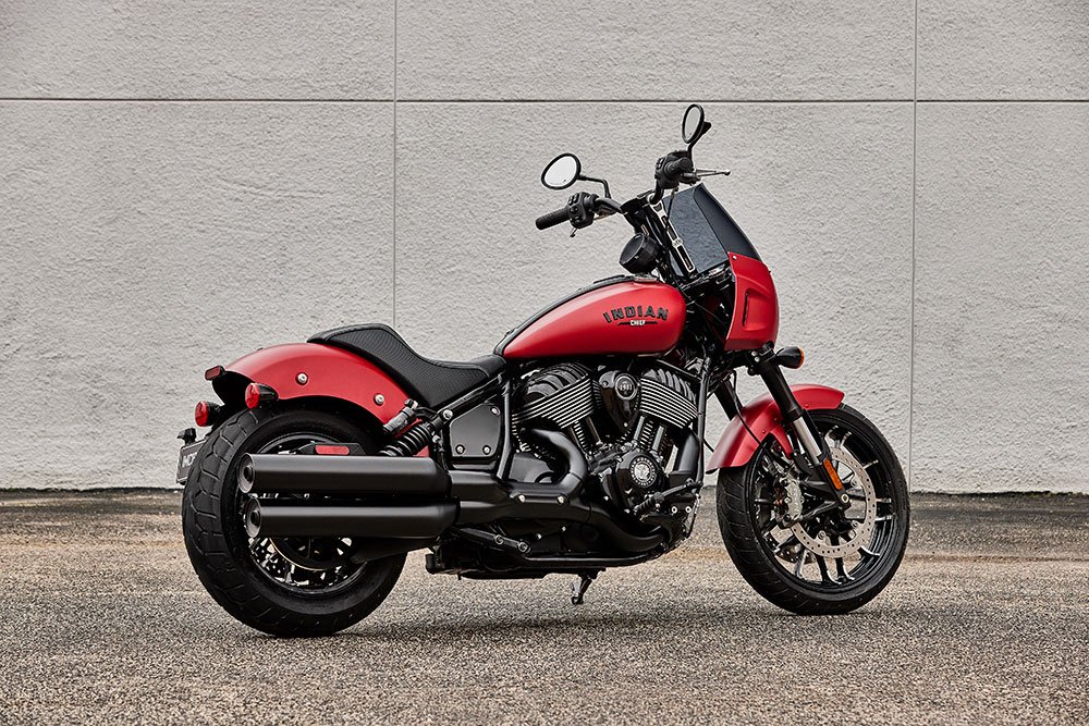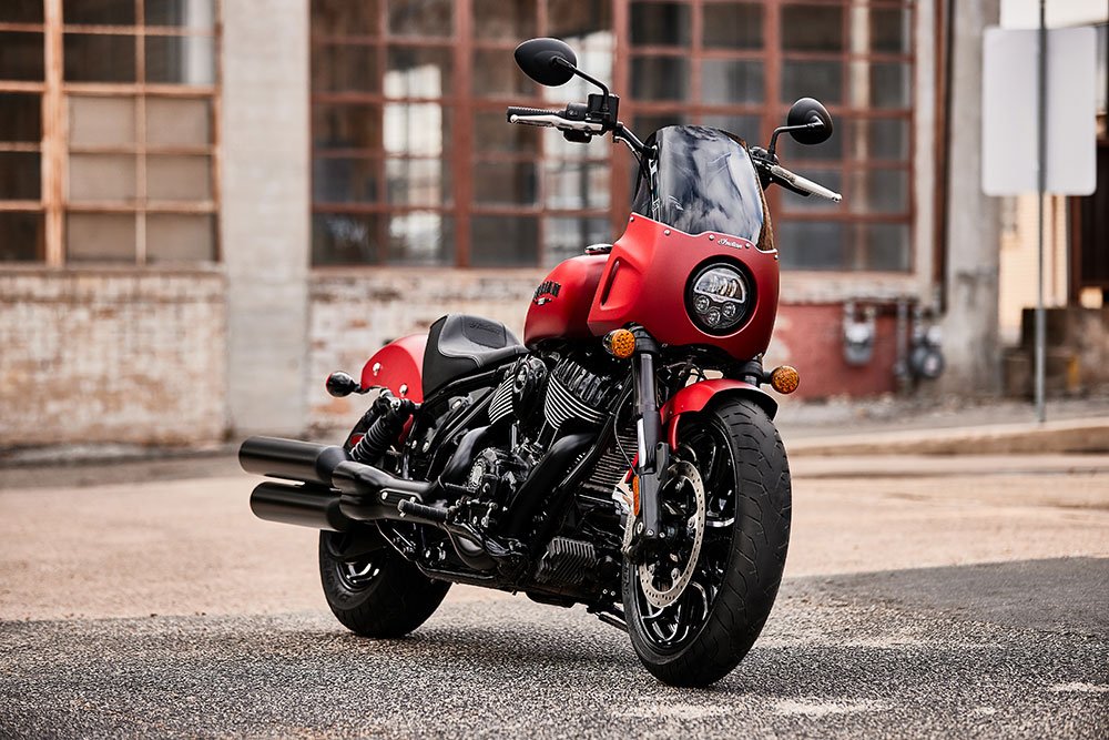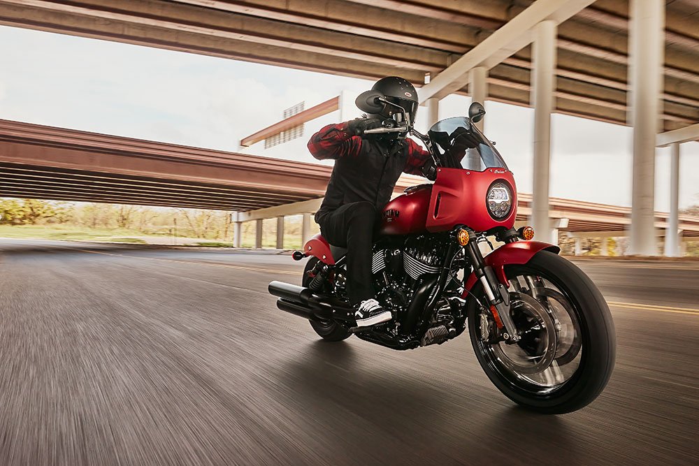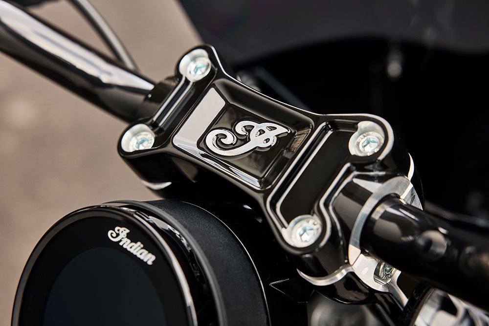 Las nuevas barras estilo moto sobre elevadores de 6 pulgadas se ubican detrás de un cuarto de carenado que brinda cierta protección contra el viento, pero está ahí principalmente para agregar estilo. En el lado del chasis, Indian ha utilizado una horquilla invertida KYB de 43 mm configurada en un ángulo más agudo de 28 grados y un viaje más estrecho de 4.4 pulgadas. Los nuevos amortiguadores Fox a cuestas tienen 4 pulgadas de recorrido, mientras que Indian también ha mejorado el paquete de frenos utilizando componentes Brembo.