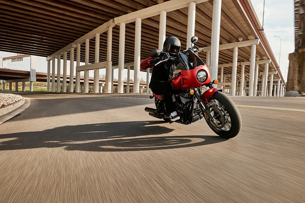 El pequeño carenado proporciona la cantidad justa de protección contra el viento para motociclistas de estatura promedio. El aire fluye limpiamente sobre el casco sin que se note ningún golpe, y elimina todo el flujo de aire de la parte superior del torso, lo que elimina aún más la fatiga que es común en los cruceros sin carenado. Y es que hay que tener en cuenta que, gracias a los amortiguadores Fox, el asiento de la Sport Chief se encuentra 1 pulgada más alto que en los modelos no equipados. La altura total del asiento al piso es de 27 pulgadas.