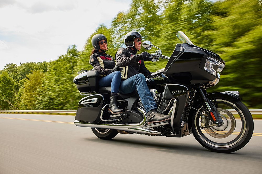 Indian entró por la puerta grande a la competencia por el título de la “reina de la carretera” con su más reciente creación, la Pursuit, a principios de 2022. Esta motocicleta es una evolución de la conocida Challenger, pero equipada con una gran cantidad de características de turismo de lujo, que incluyen una caja de carga con un respaldo integrado para el pasajero, puños calefactables y un nuevo asiento de turismo. Sin embargo, en esencia, la Pursuit todavía funciona con el bastidor de aluminio de la Challenger y el motor PowerPlus refrigerado por líquido, así como el mismo carenado montado en el chasis. La línea Pursuit tiene dos modelos con dos versiones cada uno, con Pursuit Limited y Pursuit Dark Horse como las dos entradas principales; ambas también están disponibles con un paquete opcional de servicios de comodidad y tecnología que mejoran la conducción que Indian llama creativamente “Paquete Premium” y cuenta como un nivel de equipamiento.