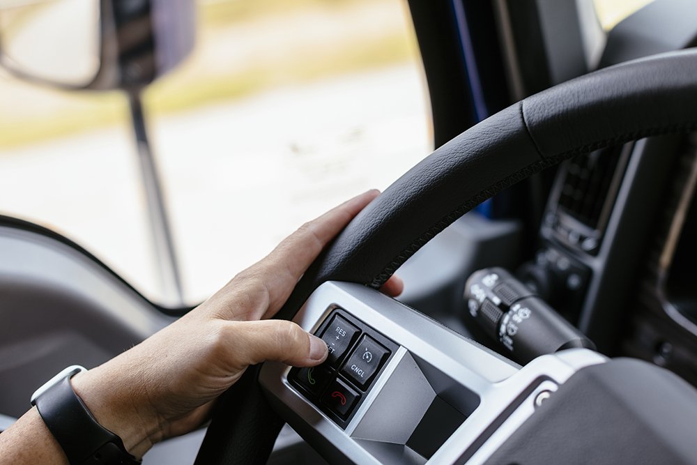 Al subir y bajar del camión, lo primero que notas es que la manija está en una posición más baja respecto al poste A, lo cual hace más fácil mantener tres puntos de contacto. La palanca de la transmisión manual automatizada está ubicada más arriba en el tablero, cerca del conductor. Los interruptores -cortados con láser- también están en una posición más alta, mientras que otras cosas que antes se controlaban con interruptores -como los limpiadores o el freno del motor- han sido eliminados por completo del tablero y recolocados en palancas detrás del volante. Esto es un movimiento simple y muy intuitivo, de esos que se agradecen cuando los tienes, especialmente en funciones básicas de manejo.