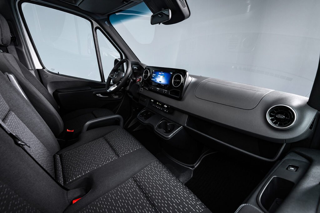 Si bien la estética no es una de las preocupaciones fundamentales entre los compradores de las vans de carga, eso no quiere decir que haya que descuidarla; algo que diseñadores de Mercedes Benz tuvieron presente a la hora de colocar unas líneas que recorren el cofre de la eSprinter del poste A a la orilla de la parrilla. Ésta, por cierto, es más angosta, los faros son más delgados y la posibilidad de montar luces de LED le añade un toque de elegancia a esta van. En el interior, la cabina es más personalizable que nunca y el sistema de infotenimiento está mucho más cerca de los que vemos en los autos de lujo de Mercedes.