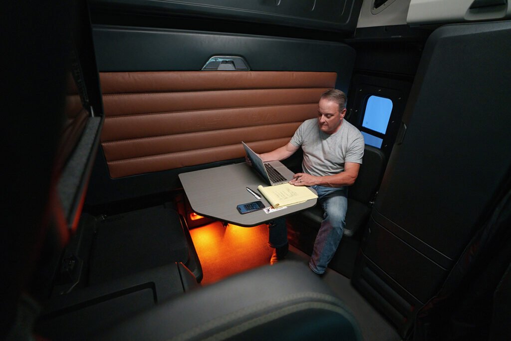 Aunque los detalles específicos del interior no se mencionan extensamente en la información proporcionada, es razonable esperar que el Cascadia de Quinta Generación ofrezca un ambiente de cabina significativamente mejorado, diseñado para maximizar la comodidad y productividad del conductor durante largas jornadas en carretera. Basándonos en las tendencias de la industria y las mejoras en generaciones anteriores, podemos anticipar un interior que combine funcionalidad con comodidad.