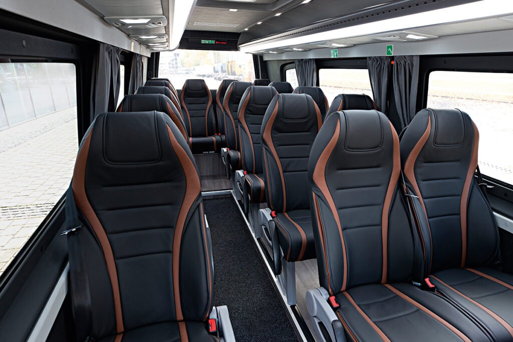 El interior del MAN TGE Coach 2025 ha sido cuidadosamente diseñado para ofrecer un entorno cómodo y funcional tanto para los pasajeros como para el conductor. En cuanto a la disposición de los asientos, el minibús tiene capacidad para hasta 16 personas, con asientos ergonómicos y tapizados de alta calidad que garantizan un alto nivel de confort durante viajes largos. La distribución de los asientos está pensada para maximizar el espacio disponible y ofrecer suficiente espacio para las piernas, asegurando que cada pasajero pueda viajar con comodidad. Además, los asientos están equipados con reposacabezas ajustables y se pueden reclinar ligeramente, brindando una experiencia de viaje más relajante.