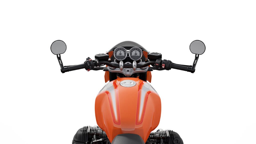 Los detalles en aluminio cepillado, las tapas del motor visibles y los acabados de alta calidad se combinan con colores clásicos como el naranja Daytona o el negro Night Black con detalles en plata. Todo el conjunto refleja un homenaje fiel a las raíces de BMW Motorrad, pero actualizado con el lenguaje de diseño moderno. Además, la disposición compacta del motor y los componentes estructurales permite una arquitectura más estrecha y elegante, resaltando su aspecto naked y deportivo.