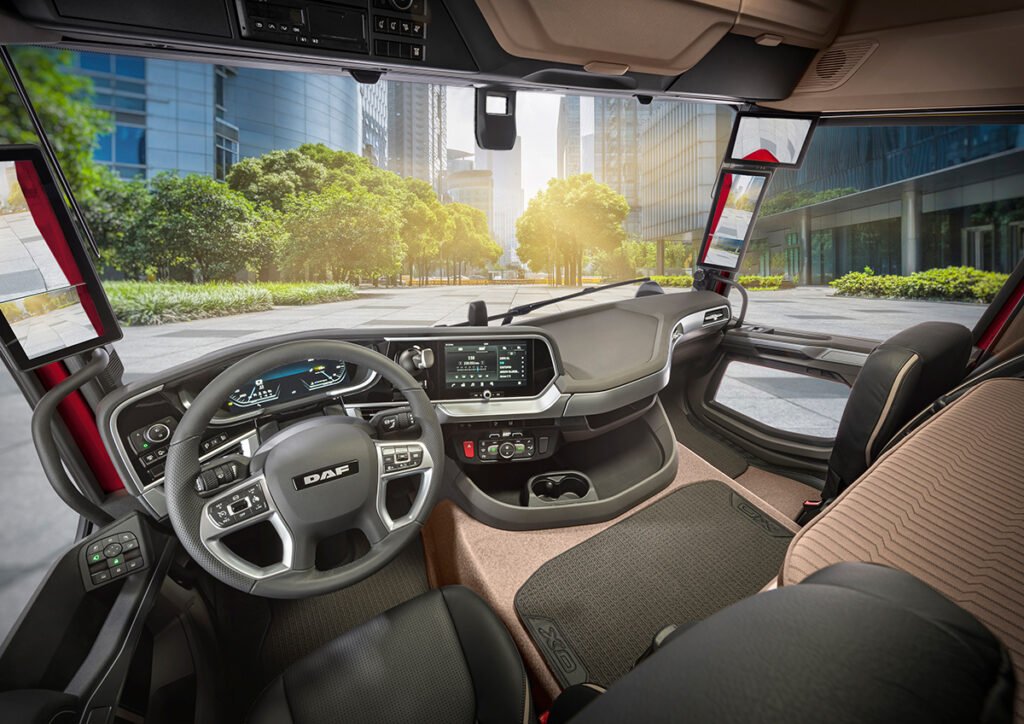 - DAF Digital Vision System: Cámaras de alta definición sustituyen los espejos tradicionales, eliminando puntos ciegos y mejorando la aerodinámica.