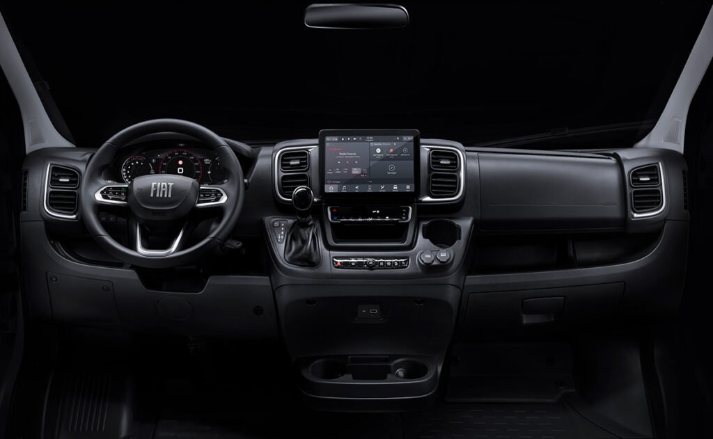 El habitáculo del Fiat Ducato ha sido diseñado con la comodidad del conductor profesional en mente. El tablero completamente rediseñado incorpora materiales resistentes y de fácil limpieza, pero con un estilo refinado que recuerda a los turismos de la marca.