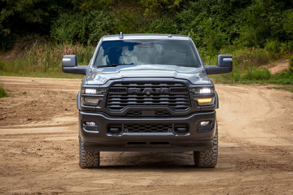 Los guardafangos pronunciados, el capó elevado y las líneas rectas transmiten una sensación clara de solidez estructural. Ram ha trabajado en pequeños refinamientos que no buscan suavizar su apariencia, sino hacerla más funcional. Las versiones orientadas al trabajo extremo destacan por paragolpes reforzados, puntos de anclaje visibles y configuraciones pensadas para remolque y uso intensivo.