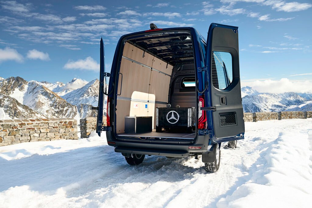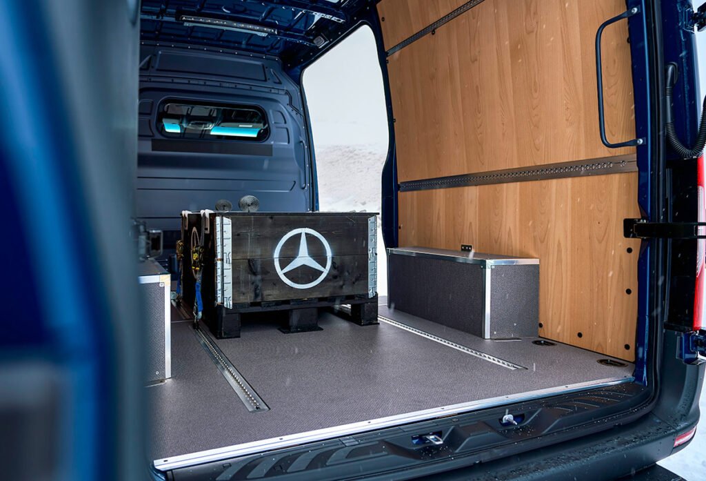 La Sprinter está disponible en múltiples longitudes, alturas de techo y configuraciones de carrocería, lo que permite adaptarla a casi cualquier necesidad operativa. El amplio portón trasero y las puertas laterales facilitan la carga y descarga, optimizando tiempos en rutas de reparto intensivas. Cada elemento del diseño responde a un enfoque práctico, pensado para el trabajo diario.