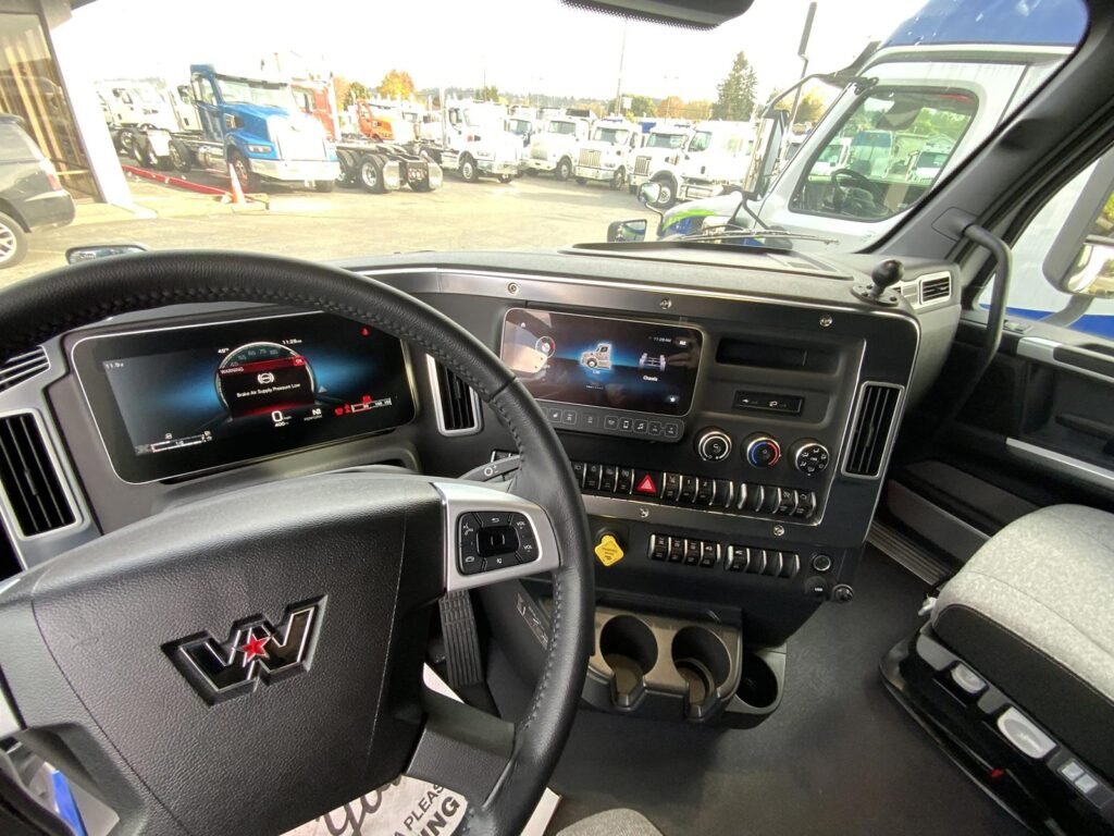 Abrir la puerta del Western Star 57X es ingresar a una cabina que ha sido diseñada pensando en el conductor como eje central. El tablero digital de alta definición ofrece información clara sobre el estado del vehículo, desde indicadores de motor hasta sistemas de asistencia activa. Los controles están estratégicamente ubicados, lo que reduce distracciones y aumenta la seguridad.