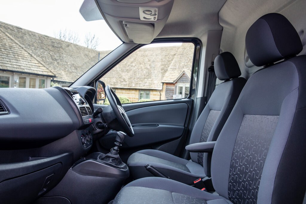 El interior del Doblò Cargo está diseñado para ser práctico y resistente. La cabina ofrece un entorno de trabajo funcional, con materiales duraderos pensados para soportar el uso intensivo.