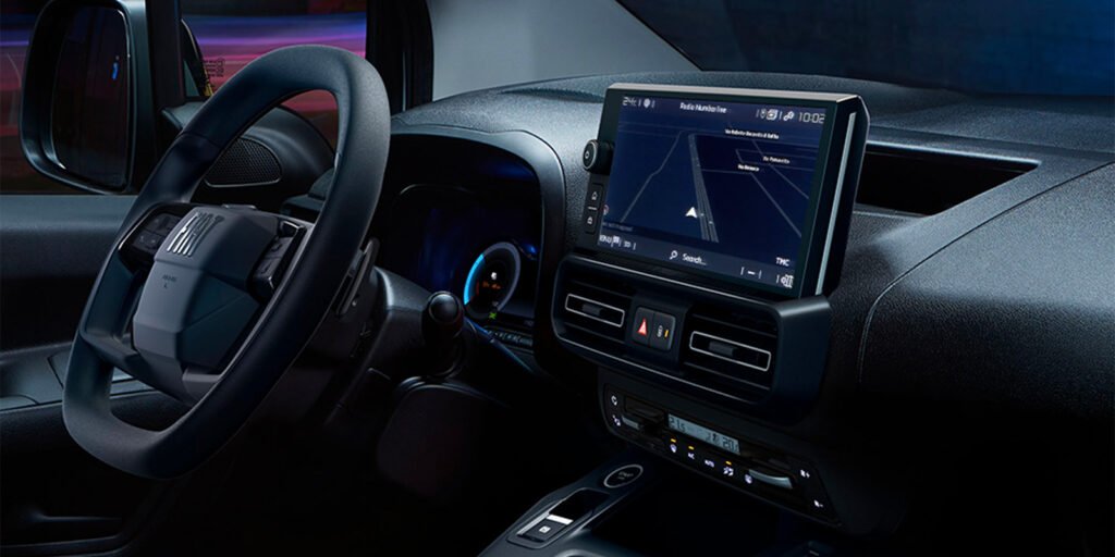 Aunque su enfoque es principalmente utilitario, el Fiat Doblò Cargo no se queda atrás en tecnología. Incorpora sistemas de infoentretenimiento compatibles con smartphones, lo que permite al conductor mantenerse conectado durante la jornada laboral.