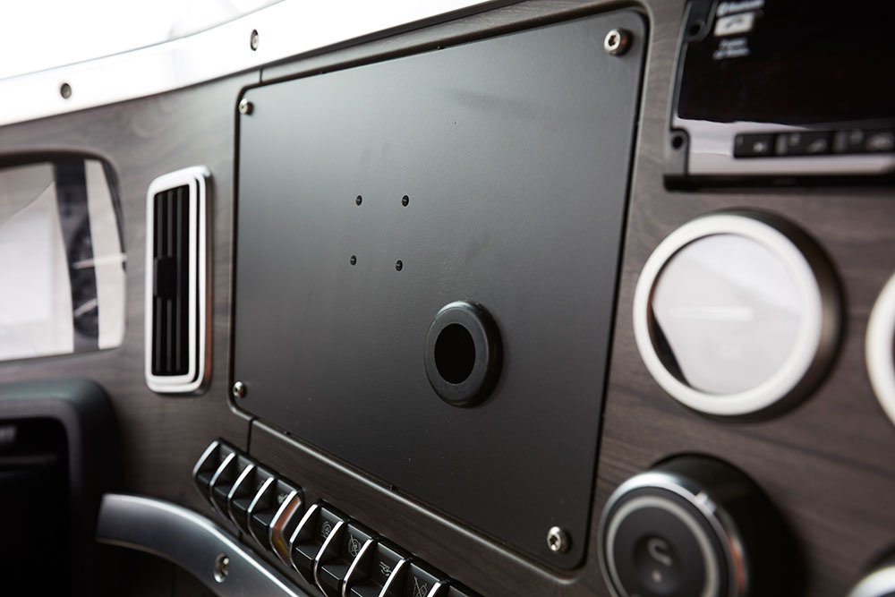 Tradicionalmente, los instaladores han utilizado el espacio entre los asientos para montar interfaces de control del conductor para sus diversos equipos. Para mantener ese espacio libre y facilitar la instalación, DTNA ha desarrollado el Flex Panel, un panel que encaja en el panel B del tablero equipado con los dispositivos de control adecuados.