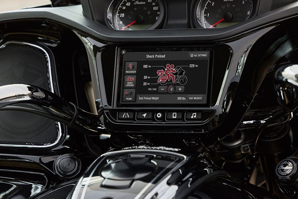 La precarga electrónica, desarrollada por Fox, es estándar en los modelos Premium Package y también está disponible como una actualización de accesorios para Indian Pursuit Dark Horse, Indian Pursuit Limited y todos los modelos Indian Challenger. Cada uno de los modelos Premium también incluye luces de conducción integradas dentro de los carenados inferiores duros; también están disponibles como actualizaciones para Indian Pursuit Limited e Indian Pursuit Dark Horse.