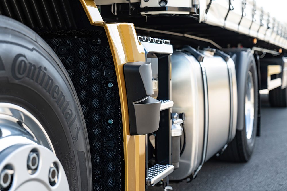 Las carcasas de los espejos son más estrechas y tienen una superficie delantera reducida, lo que ayuda a que el camión sea un poco más resbaladizo ante el viento. Los espacios entre los postes A y los espejos son más grandes, lo que resulta en un punto ciego más pequeño en el acceso a glorietas y cruces. Las carcasas de plástico en el exterior de la cabina contienen y protegen los sensores de radar que operan las funciones de asistencia de giro y asistencia de cambio de carril del nuevo camión.
