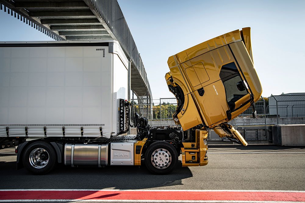 MAN ha transformado totalmente el interior del TGX, con una cabina completamente rediseñada, incorporando numerosas características nuevas. Se involucró con 700 conductores durante el proceso de diseño. Las puertas del TGX ahora se abren a 89 grados para acomodar cargas más amplias. Los escalones también son más anchos que antes, con el mismo espaciado e iluminación opcional. Un dato interesante es que los conductores pueden acceder a algunas funciones clave desde el exterior de la cabina mediante cuatro interruptores en la parte inferior del interior de la puerta. El interruptor de emergencia es fijo, pero los demás se pueden configurar según las preferencias del conductor.